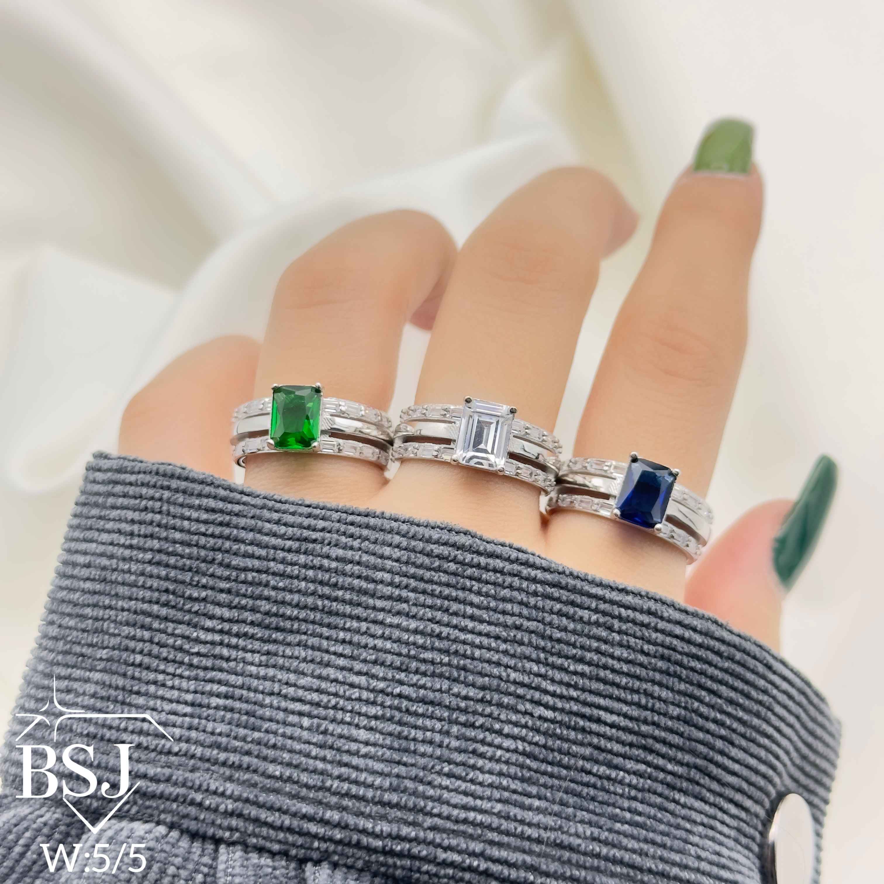 انگشتر نقره میکرو BSJ_r604 یکی از به روز ترین انگشترهای ساخته شده از نقره با عیار 925 می باشد.سنگ های به کار رفته در آن برلیان و پرنس از جنس اتمی زیرکونیا و نگین های رنگی سنتتیک(آزمایشگاهی) که در سه رنگ جذاب تولید شده است می باشند.سنگ ها به صورت میکروستینگ مخراج کاری شده اند و در برابر ضربه مقاوم اند.آبکاری دو مرحله ای رودیوم(طلا سفید)، سبب کیفیت بی نظیر دوام رنگ آن شده است و به دلیل عدم استفاده از نیکل در ساختار آن، بدون حساسیت بوده و با پوست حساس سازگار است.به دلیل کیفیت فوق العاده و درخشش عالی، تفاوتی با نمونه طلا ندارد.وزن انگشتر 5.5 گرم می باشد.